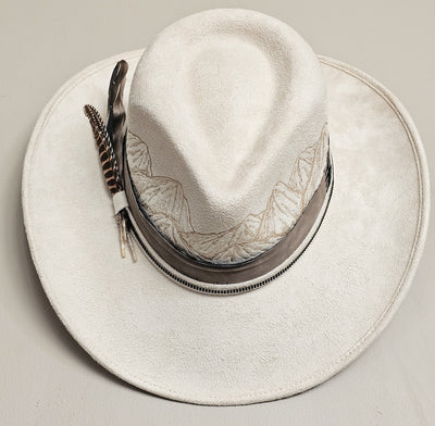 Nashville Glam || Large || Ivory Suede Burned Wide Brim Hat