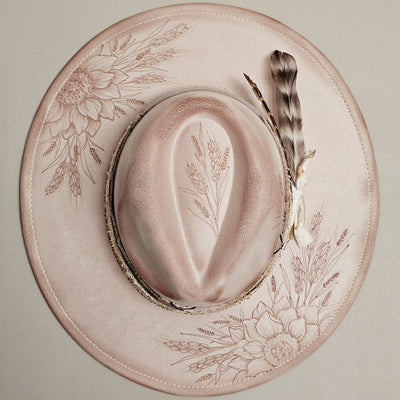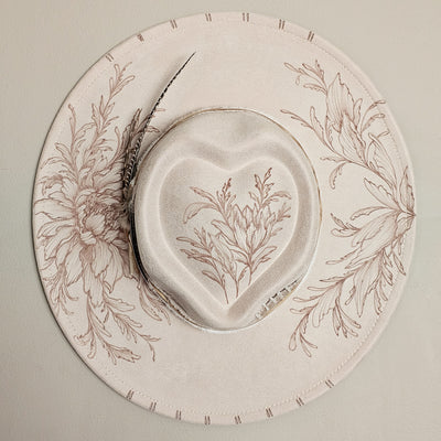 Country Wildflowers || Taupe Suede Burned Wide Brim Hat