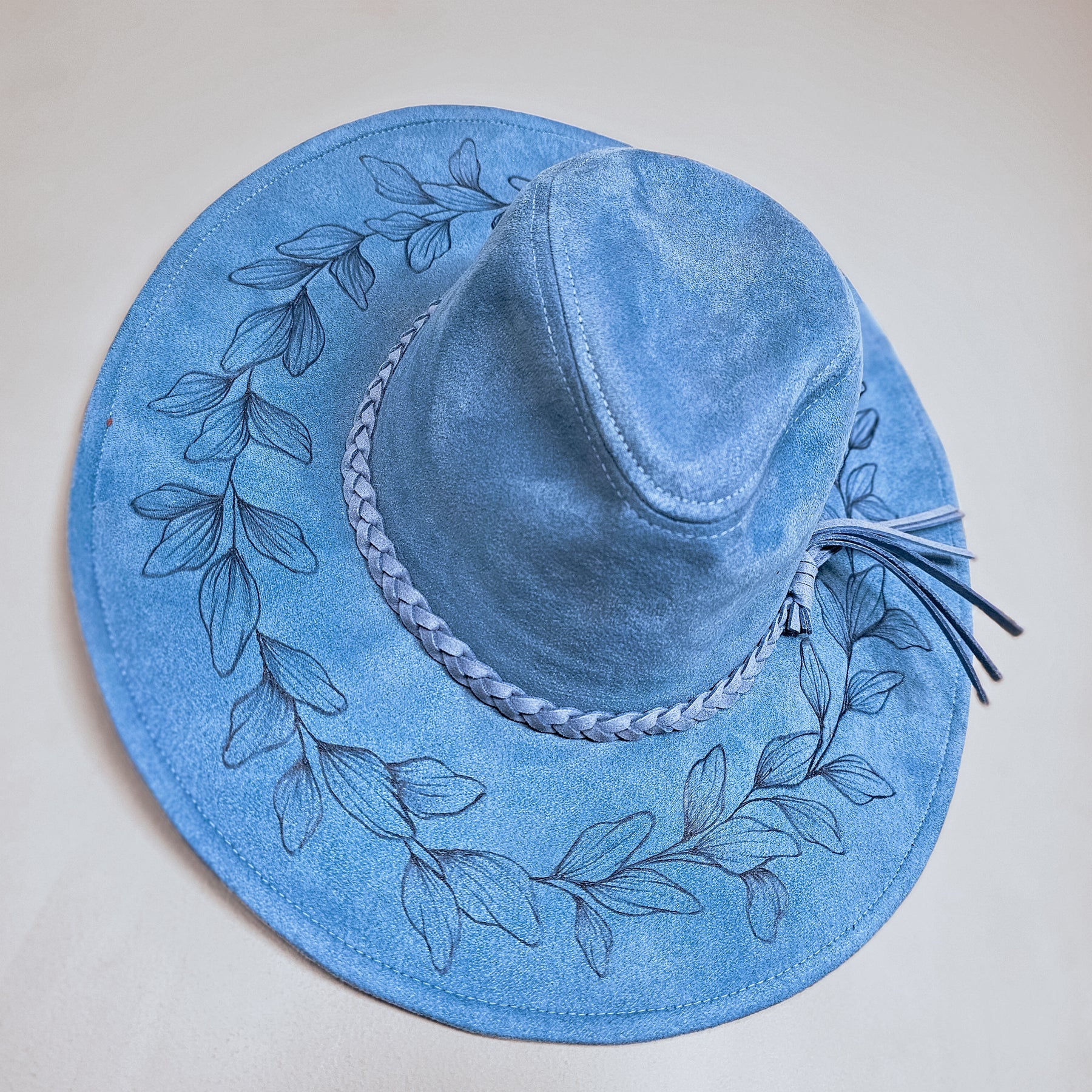 Let's Go Somewhere|| Blue Suede Burned Wide Brim Floppy Hat