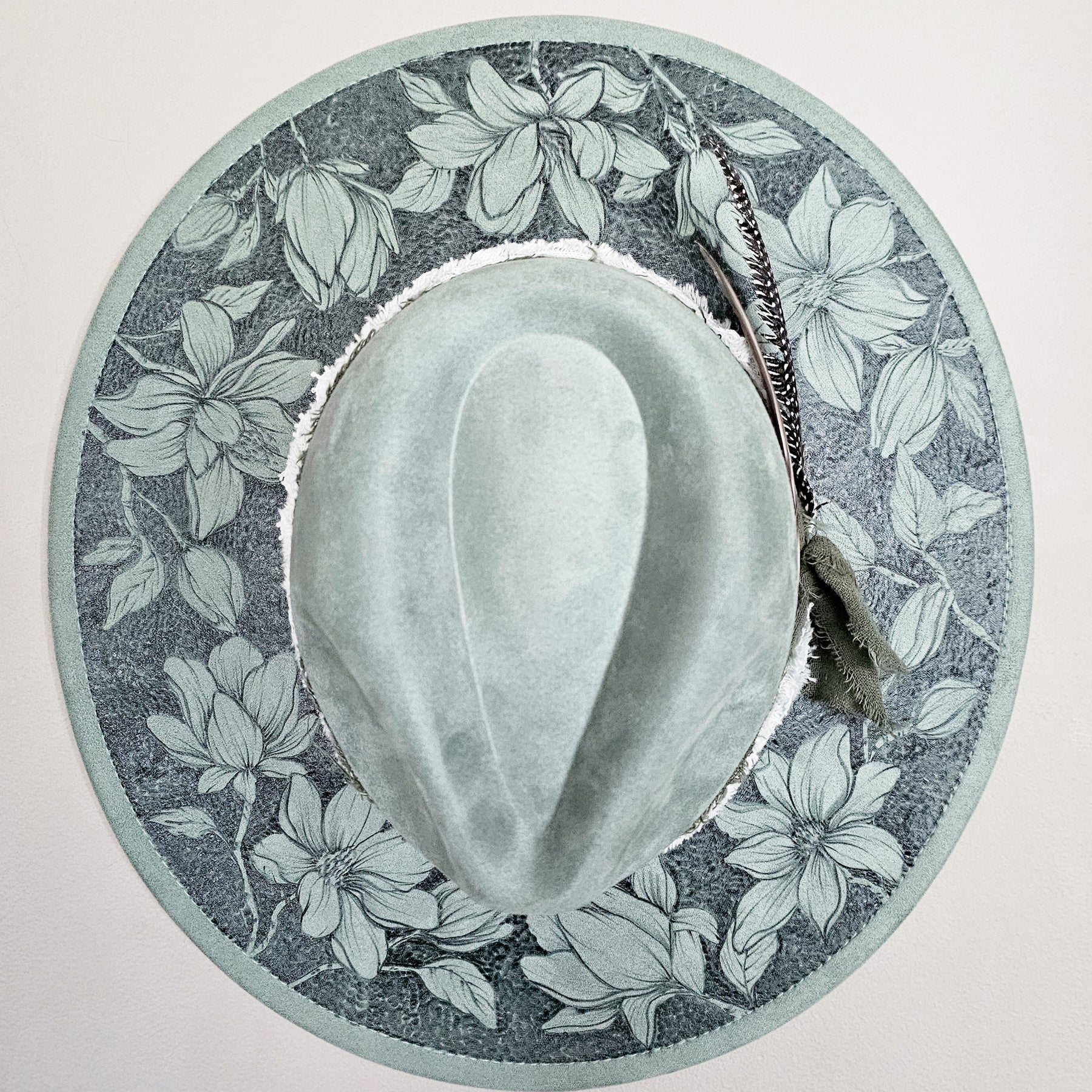Magnolia Beauty || Sage Green Suede Burned Wide Brim Hat