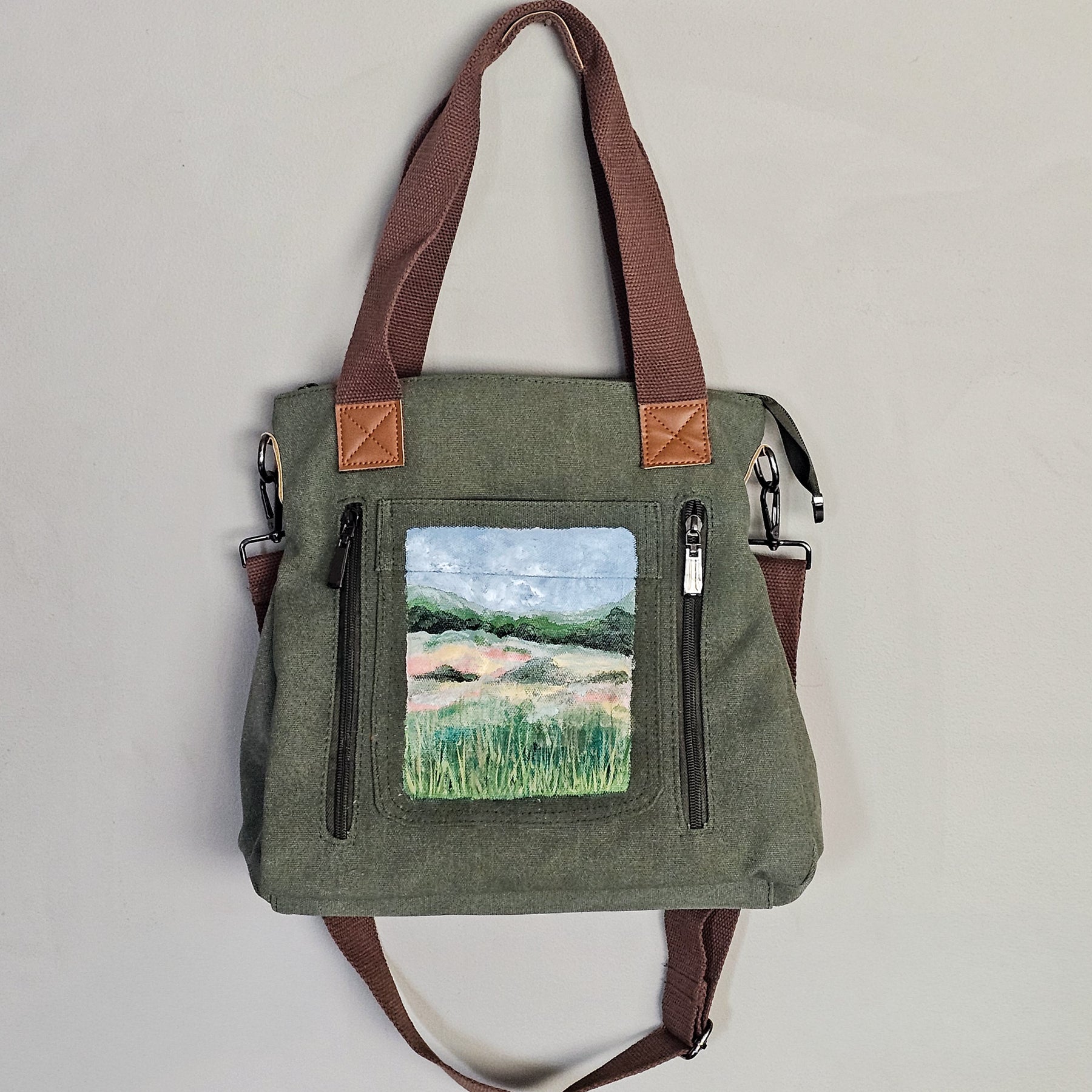 Prairie Views || Sage Green Canvas Hand Painted Tote Bag