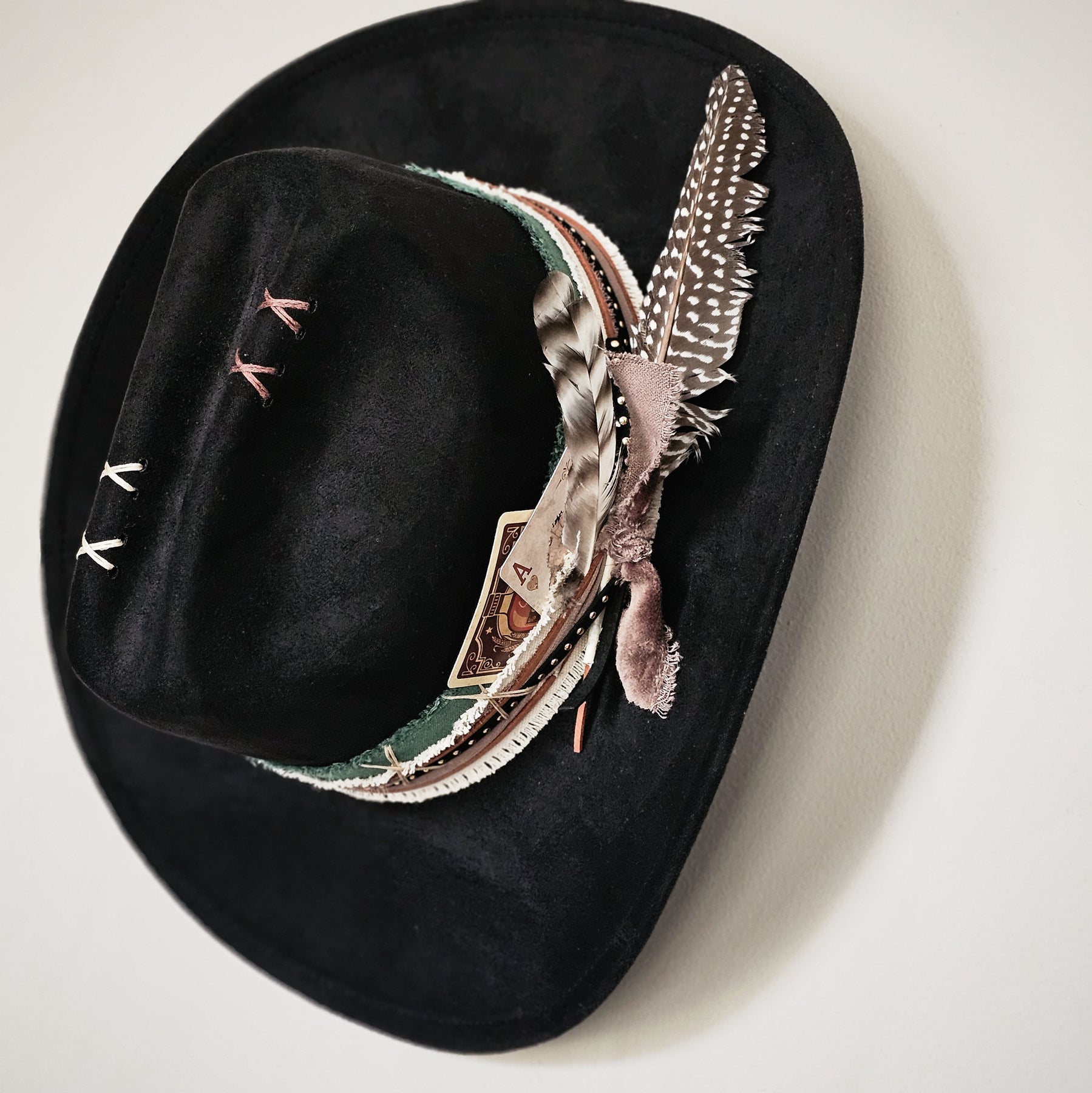 Rodeo Ready|| Black Suede Burned Cowboy Style Hat