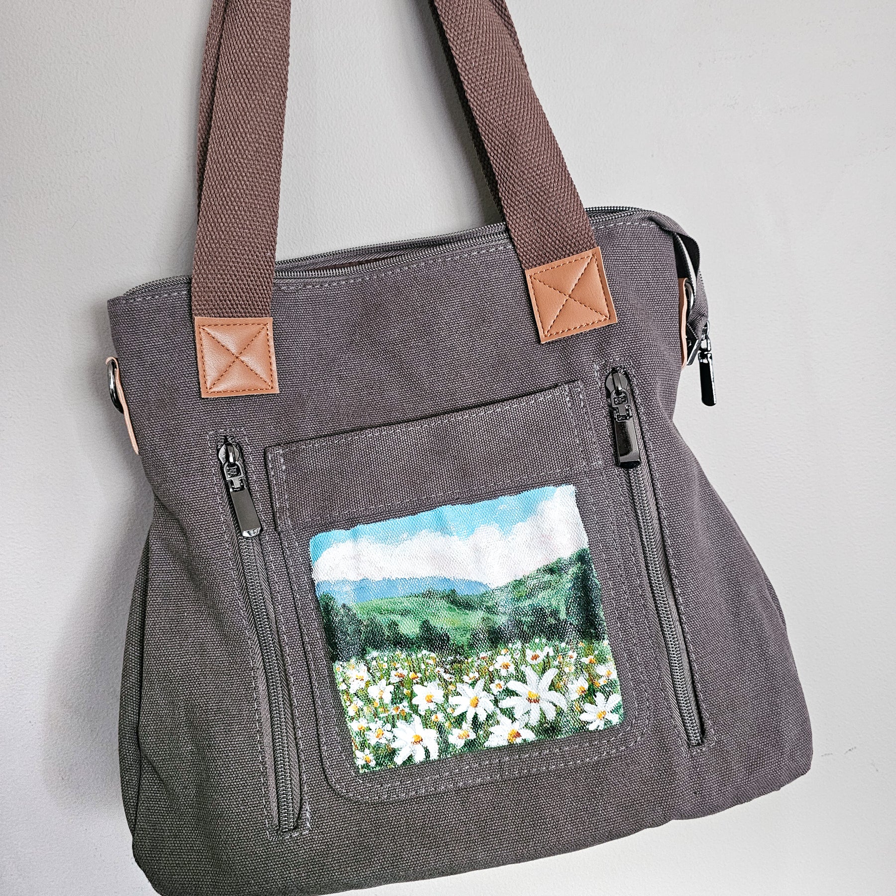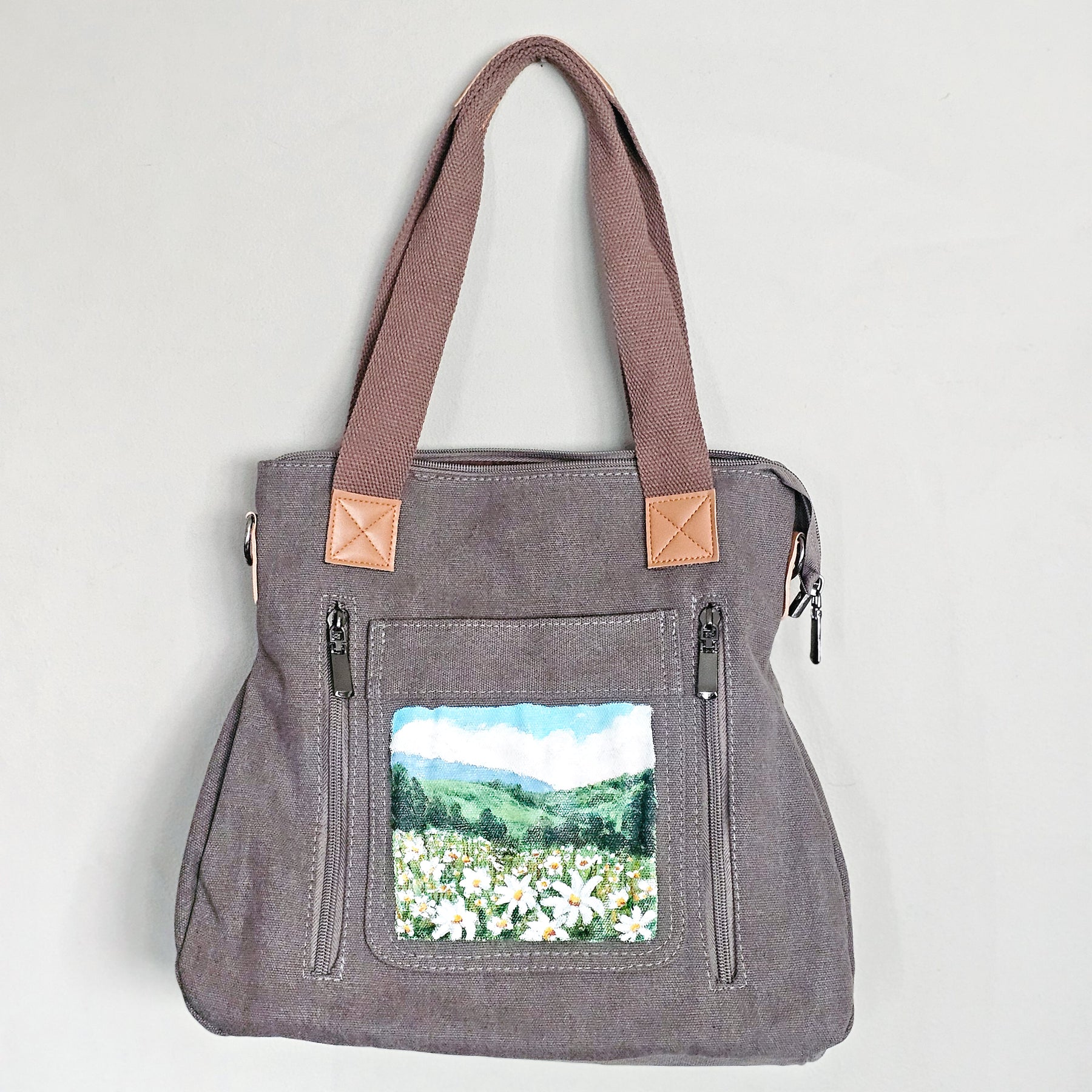 Field of Daisies || Taupey Gray Canvas Hand Painted Tote Bag