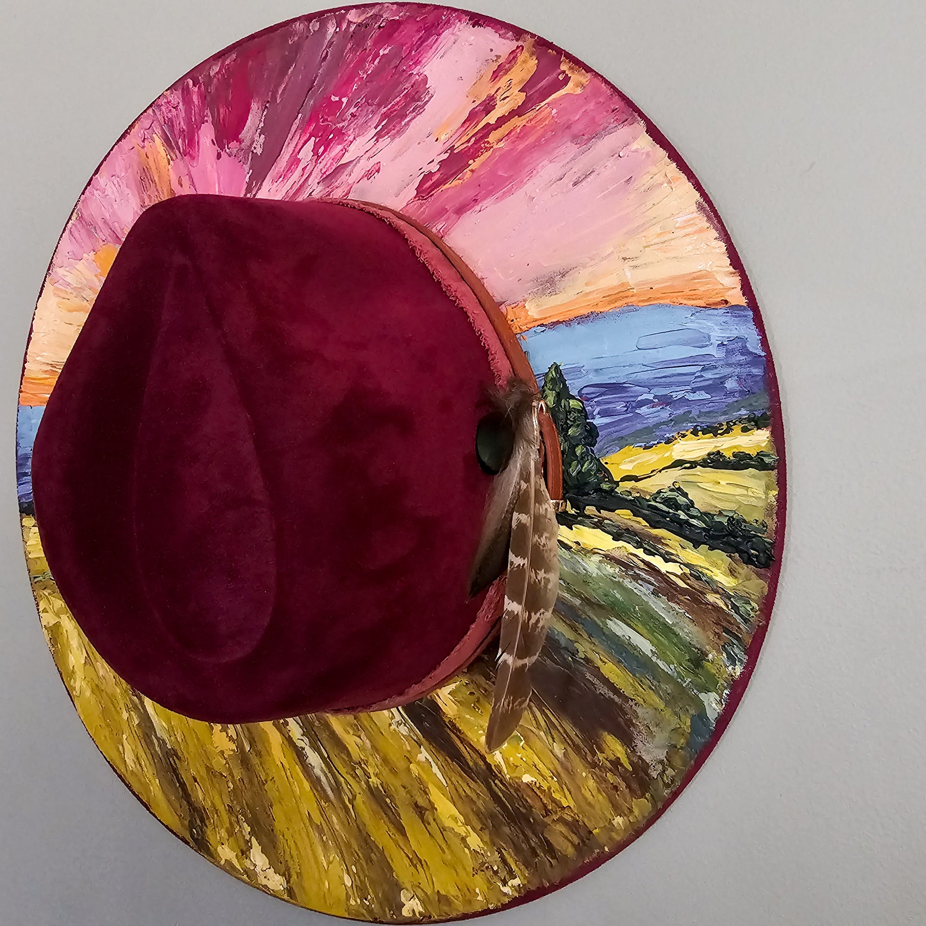 Wheat Fields Sunset || Dark Heather Mauve Suede Hand Painted Wide Brim Hat